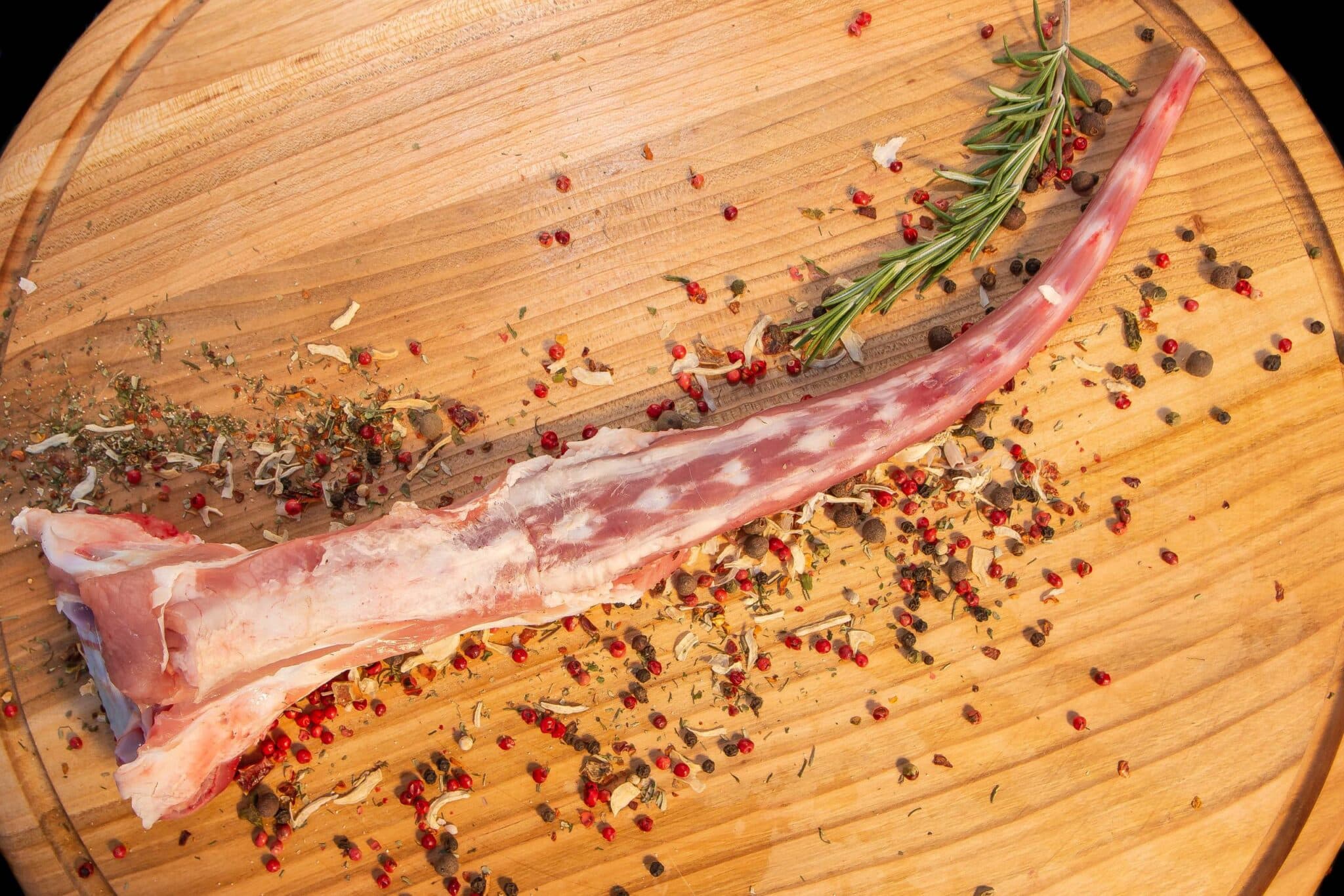 Deze ossenstaart van grasgevoerd rundvlees is een klassiek stuk vlees dat bekendstaat om zijn intense smaak en veelzijdigheid in de keuken. Doordat het vlees langzaam wordt gegaard, komt het volle karakter optimaal tot zijn recht. Het rundvlees is afkomstig van dieren met lokale Twentse afkomst die uitsluitend gras hebben gegeten, wat zorgt voor een pure smaak, een stevige structuur en een natuurlijke vetverdeling. Ideaal voor wie graag kookt met eerlijke ingrediënten en traditionele bereidingen waardeert.